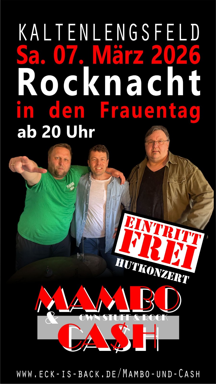 7. März 2026 GanztagsRocknacht in den Frauentag mit „Mambo u. Cash“- am 07.03.2026 im DGH Kaltenlengsfeld