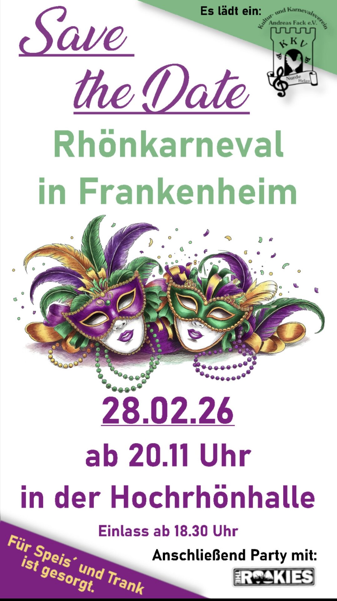 28. Februar 2026 GanztagsRhönkarneval am 28.02.2026, ab 20.11 Uhr, in Frankenheim in der Hochrhönhalle